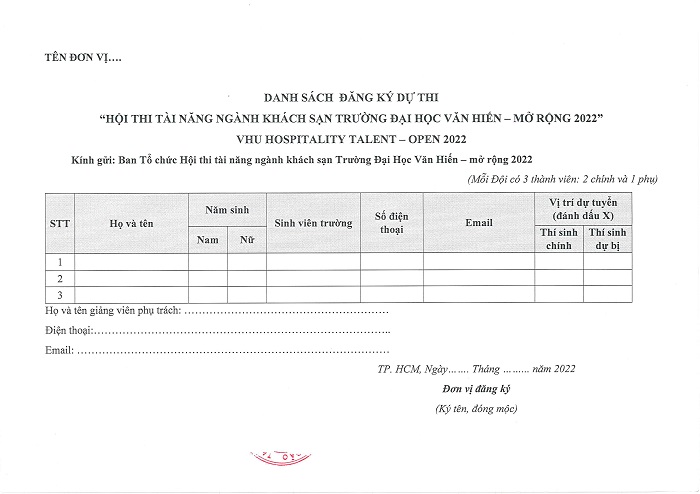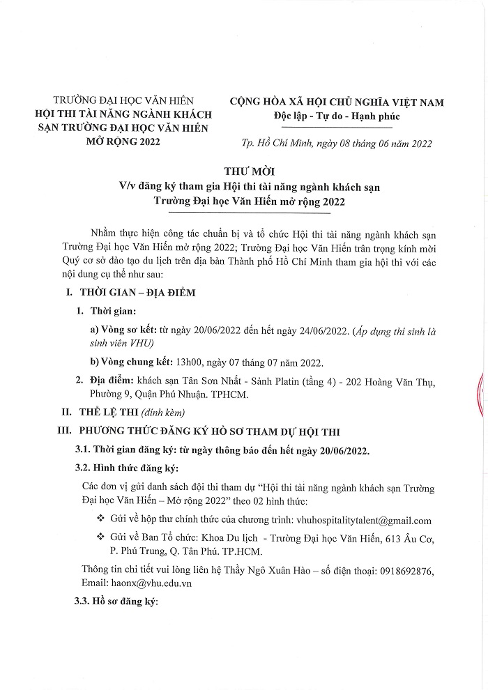HỘI THI TÀI NĂNG NGÀNH KHÁCH SẠN VHU - MỞ RỘNG 2022