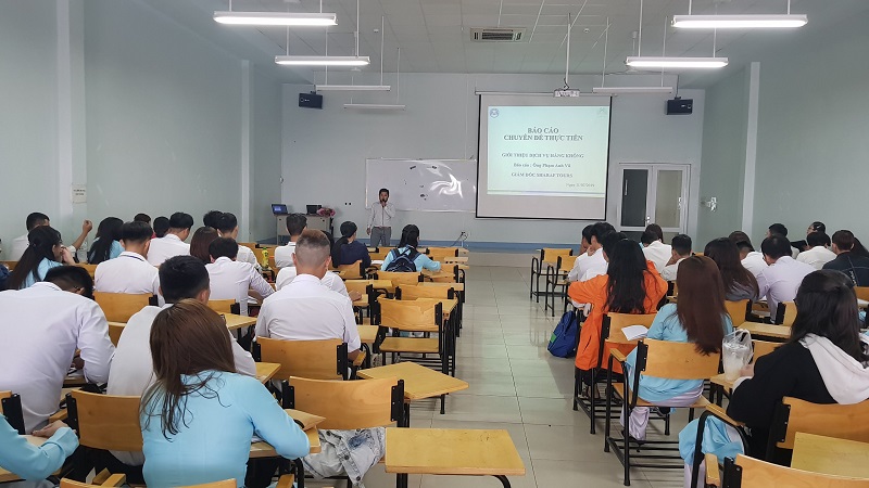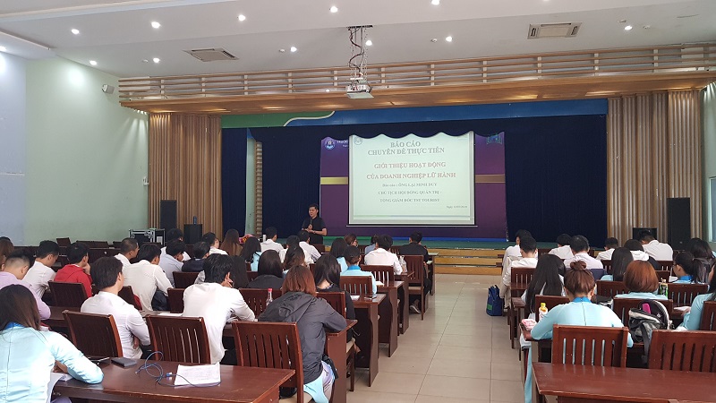 Ngày 11,12,13/07/2019, Bộ môn Quản trị dịch vụ du lịch Lữ hành tổ chức các buổi báo cáo chuyên đề thực tiễn với sự tham gia hơn 100 sinh viên khóa 2017. Báo cáo viên là người có nhiều kinh nghiệm hoạt động trong lĩnh vực Du lịch , chia sẻ nhiều nội dung hấp dẫn nhằm giúp các bạn sinh viên có cơ hội tìm hiểu thêm về vị trí việc làm sau khi ra trường, một số nghiệp vụ về hàng không, ứng dụng những kiến thức kỹ năng, học tập trên giảng đường để có thể xử lý tốt các tình huống trong công việc, đáp ứng nhu cầu của Doanh nghiệp. Ba chuyên đề được báo cáo mang giá trị thực tiễn cao đó là: